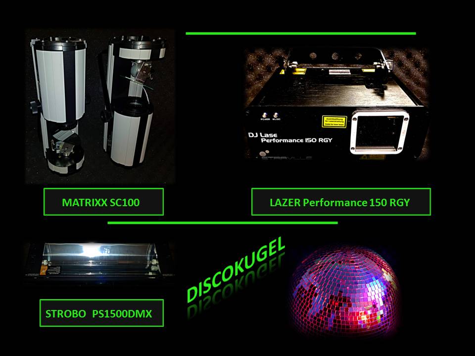 Laser, Scanner, Stroboskop, Nebel, RGB Effekt-Licht